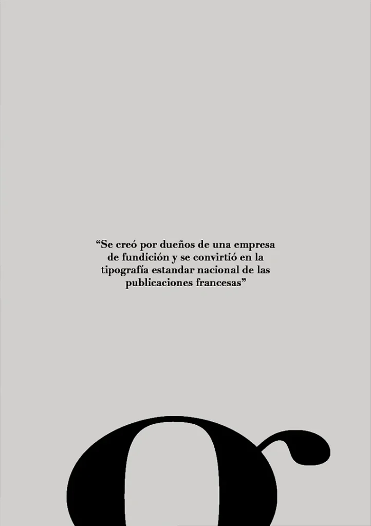 Creado en 1783 por Firmin Didot (1764-1836) quien fuera grabador, impresor, tipógrafo y miembro de la célebre dinastía de impresores franceses. Como impresor del rey Luis XVI, talló este tipo basado en los de Fournier de 1750. Posee serifs lineales o filiformes y un marcado contraste entre trazos finos y gruesos que producen un fuerte claroscuro. Como resultado el texto presenta una marcada modulación vertical. La tipografía Didot definió las características de este estilo y su éxito fue tal que se convirtió en el tipo propio de Francia y en el estándar para las publicaciones nacionales. Su hermano, Pierre Didot (1760-1853) editó de La Henriade de Voltaire (1818) que se considera una obra maestra. Varias versiones del siglo XX son