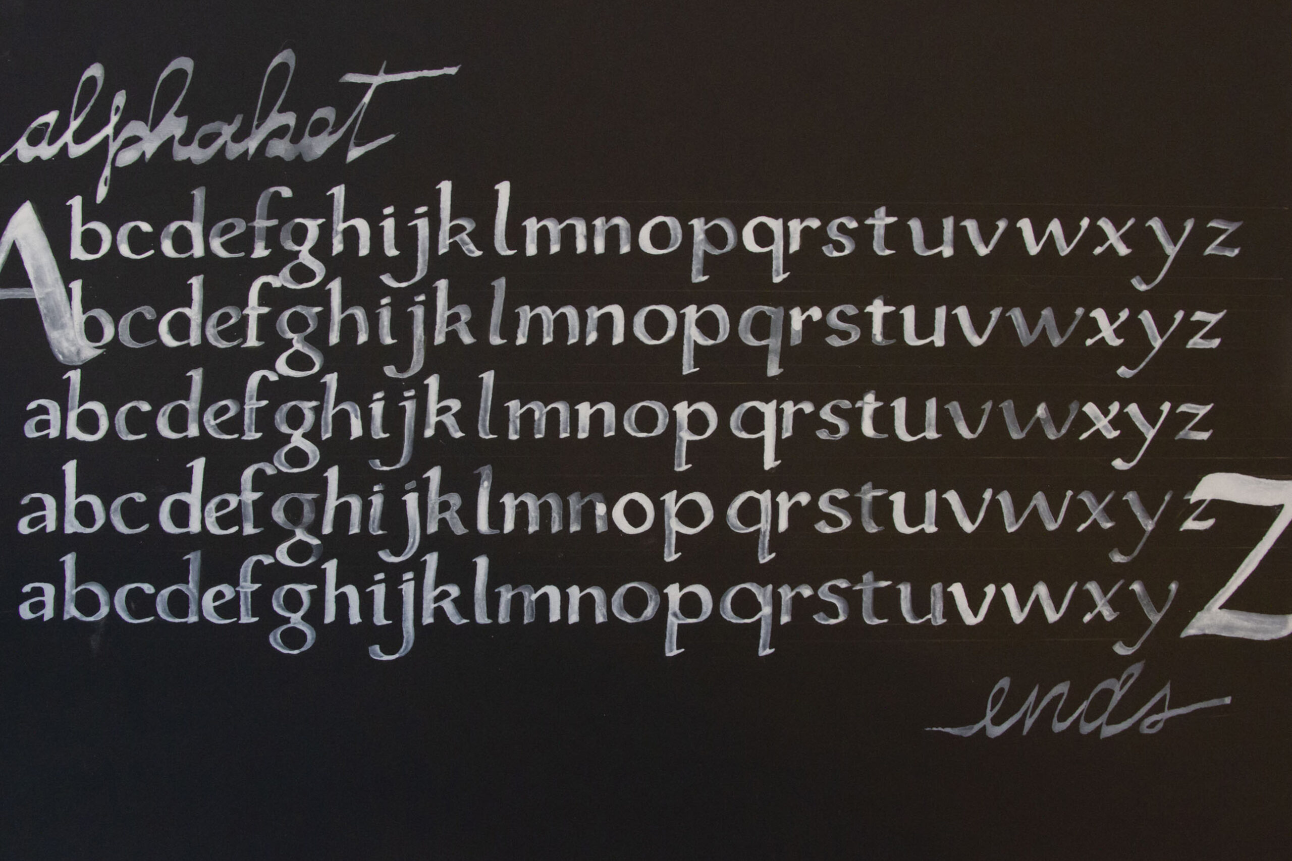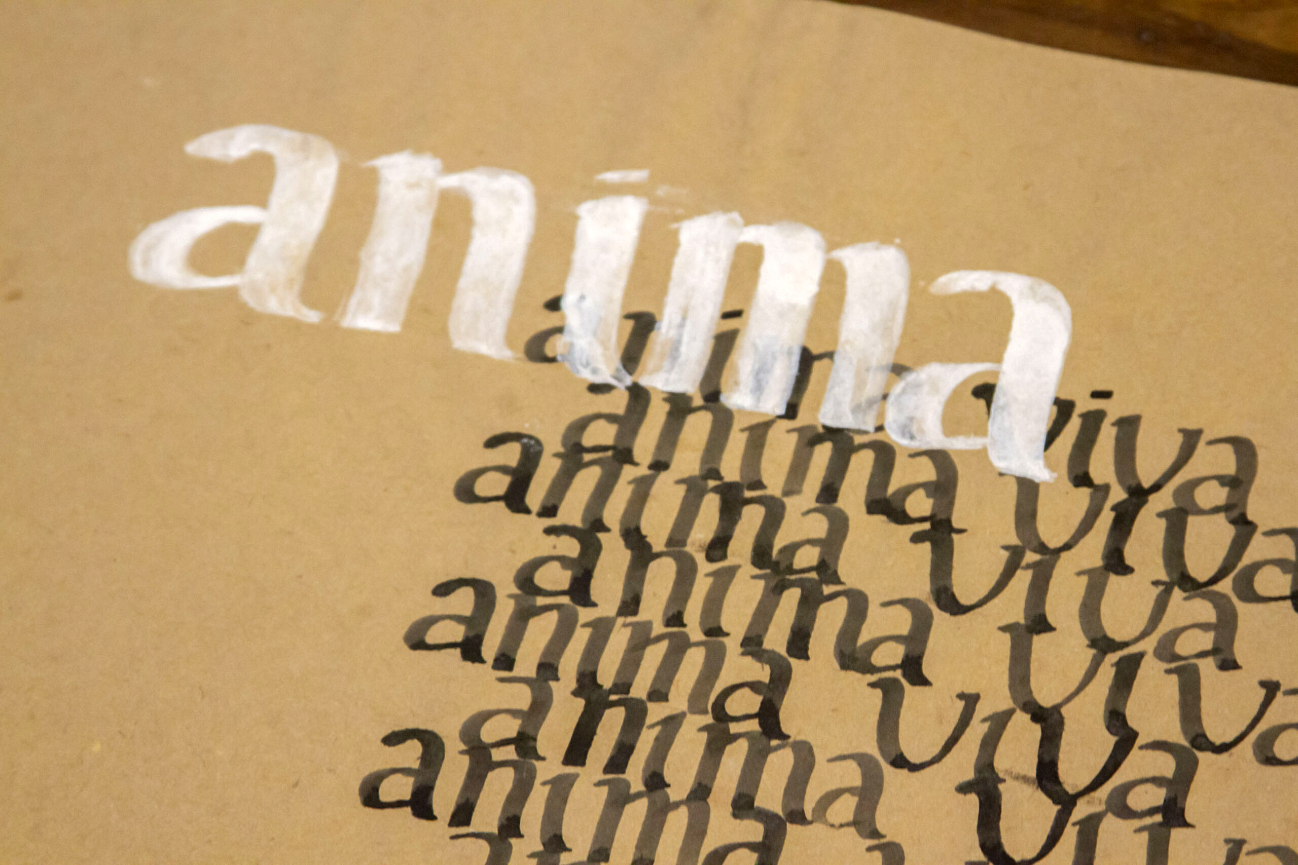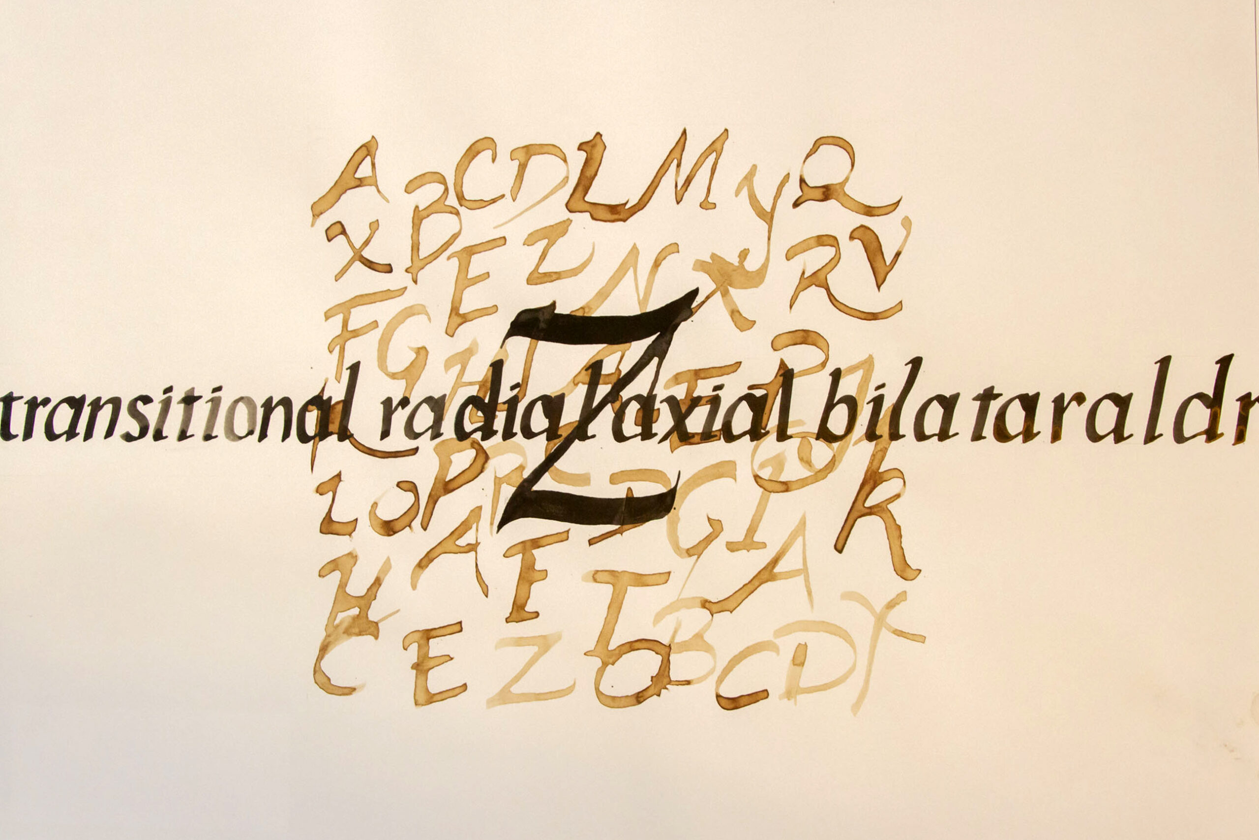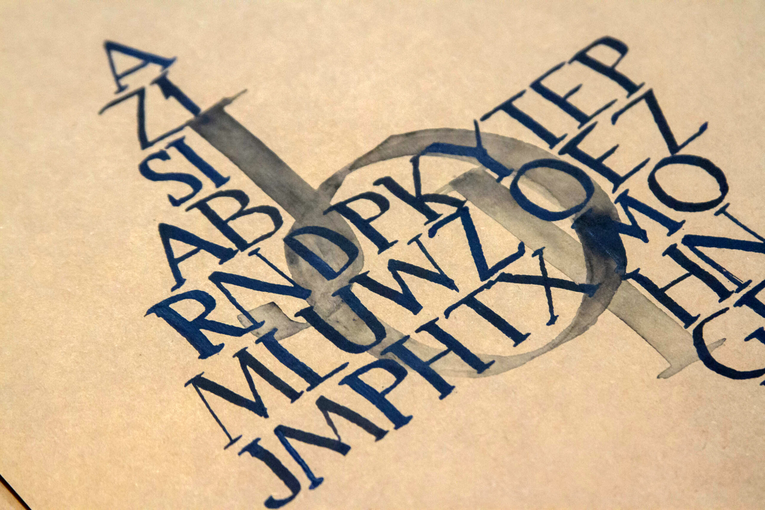 Signos y textos trazados con diferentes herramientas, medios y soportes. Entendemos y analizamos la morfología de los signos alfabéticos a partir de las herramientas (plumas chatas y tiralíneas), los medios (tinta, aguada, nogalina) y el soporte (papeles de diversos gramajes, texturas y color).
