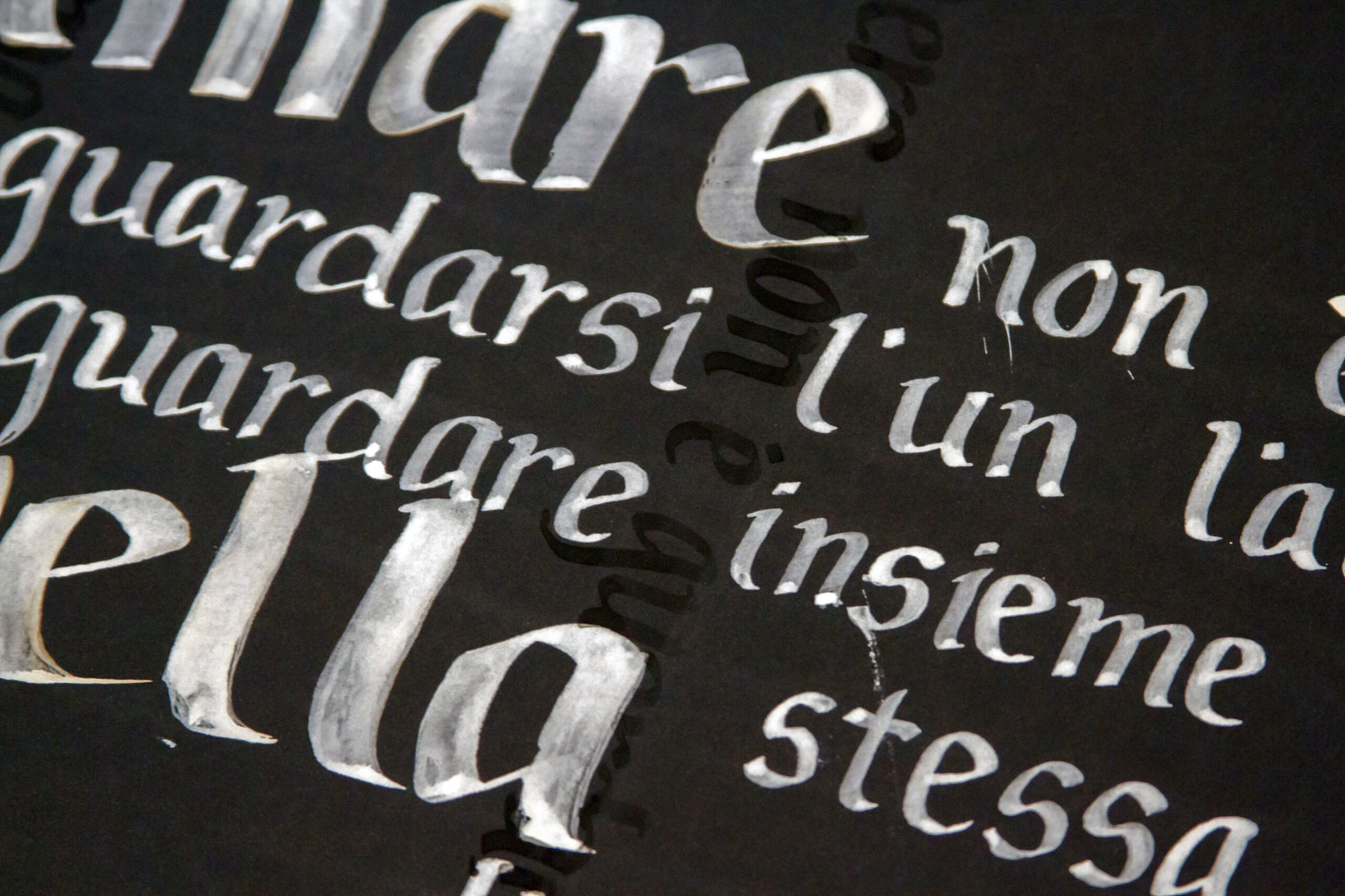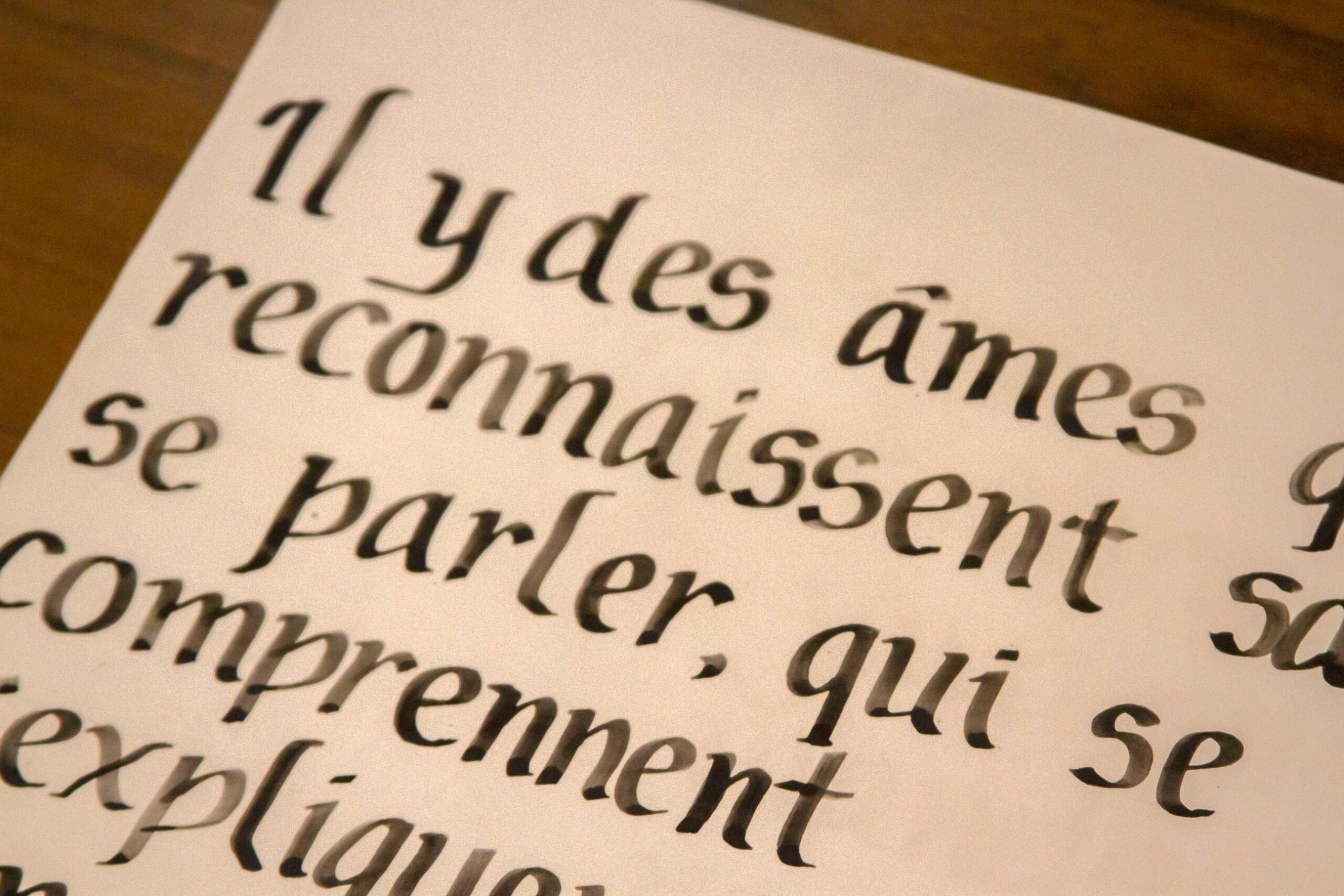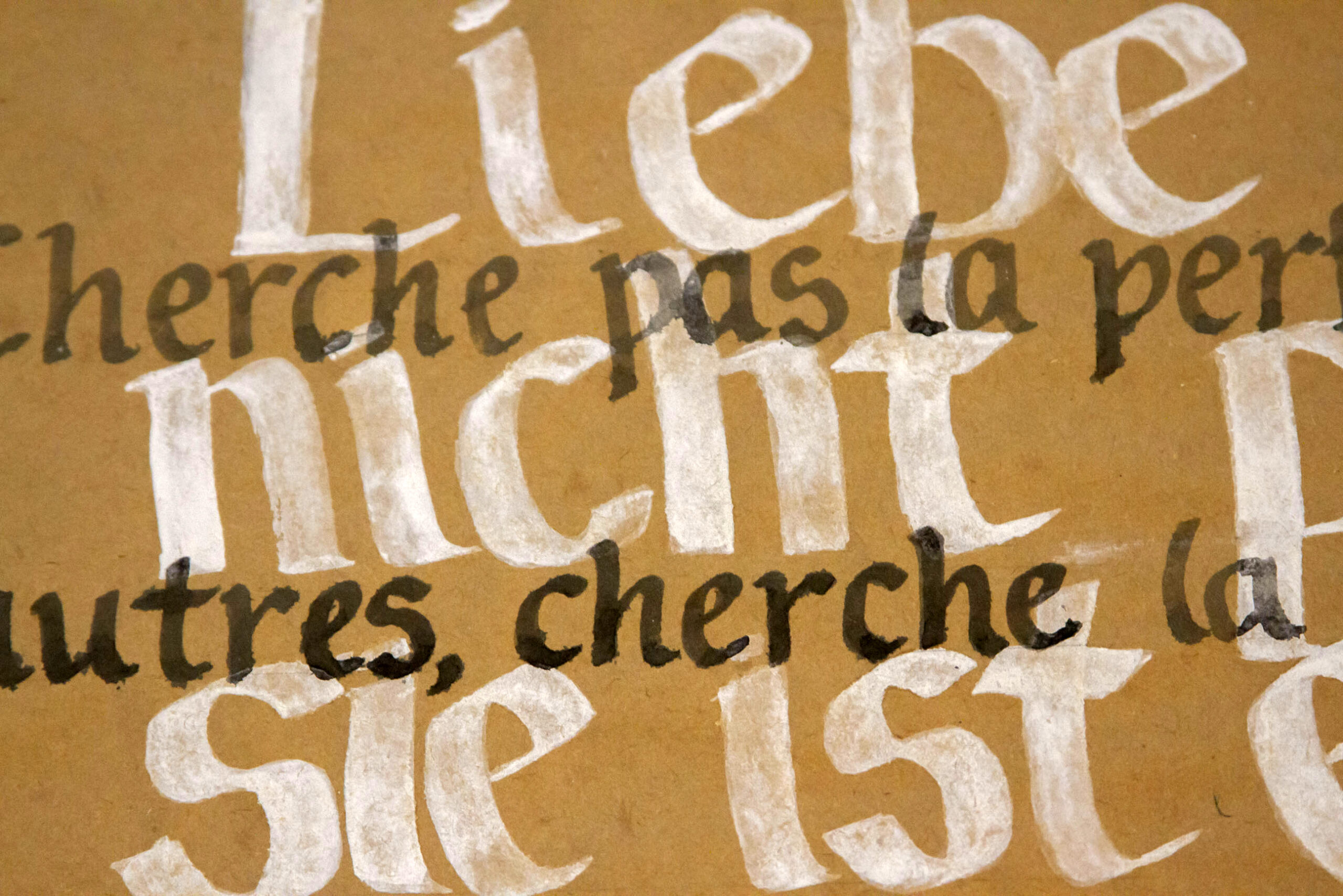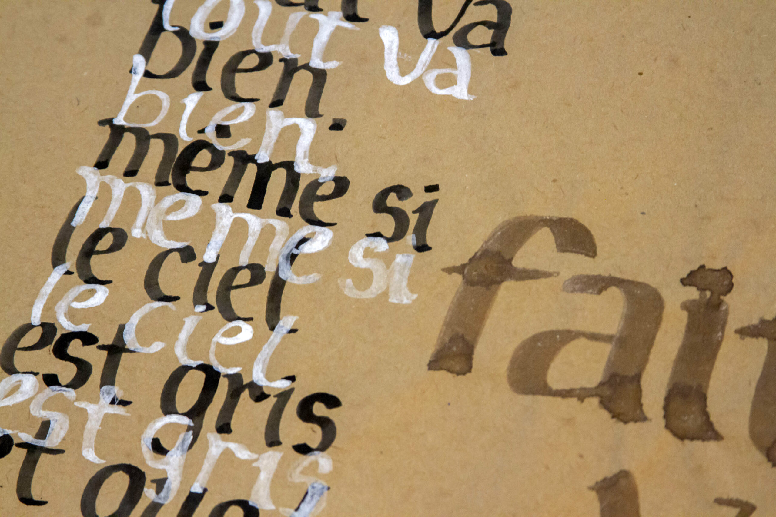 Signos y textos trazados con diferentes herramientas, medios y soportes. Entendemos y analizamos la morfología de los signos alfabéticos a partir de las herramientas (plumas chatas y tiralíneas), los medios (tinta, aguada, nogalina) y el soporte (papeles de diversos gramajes, texturas y color).