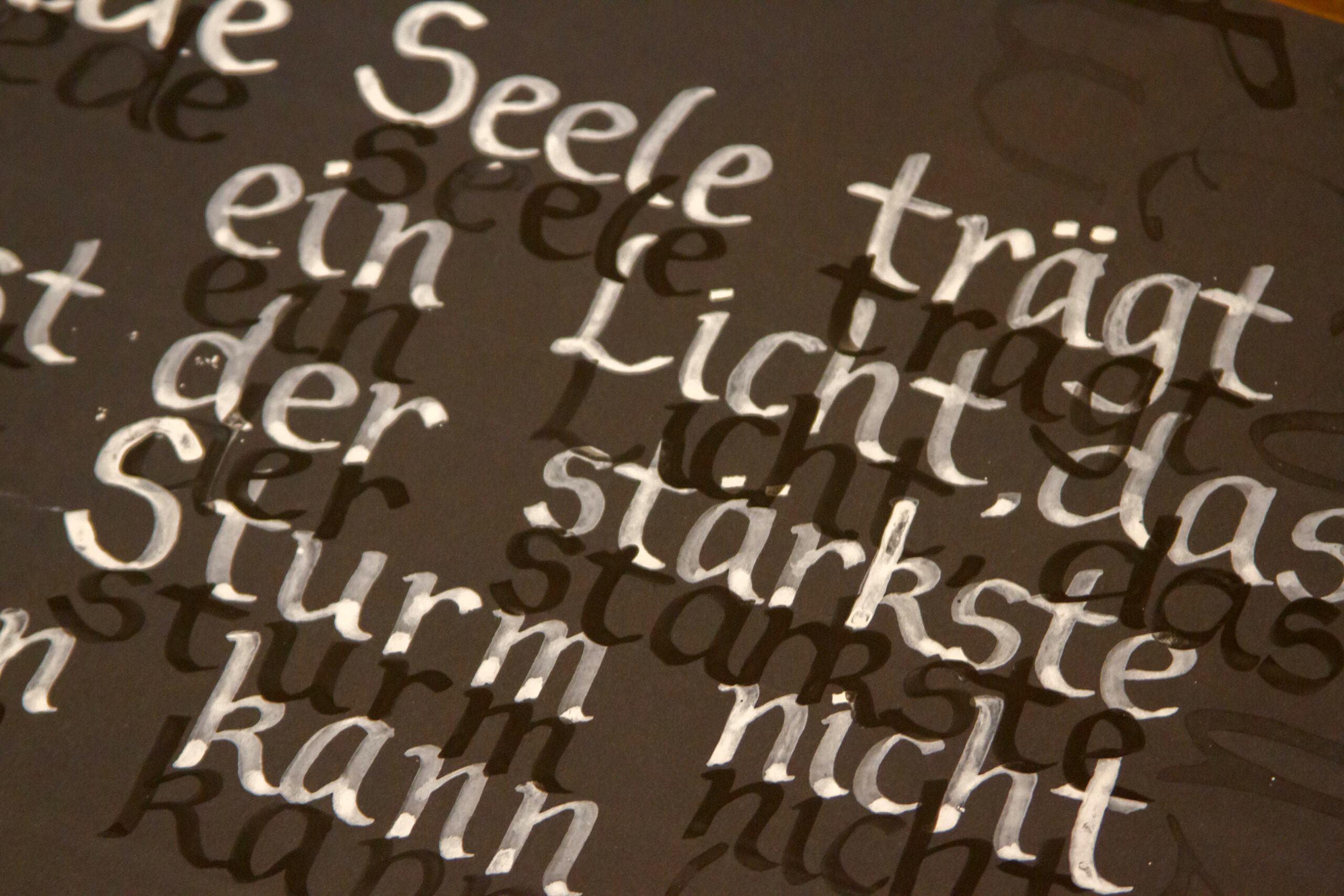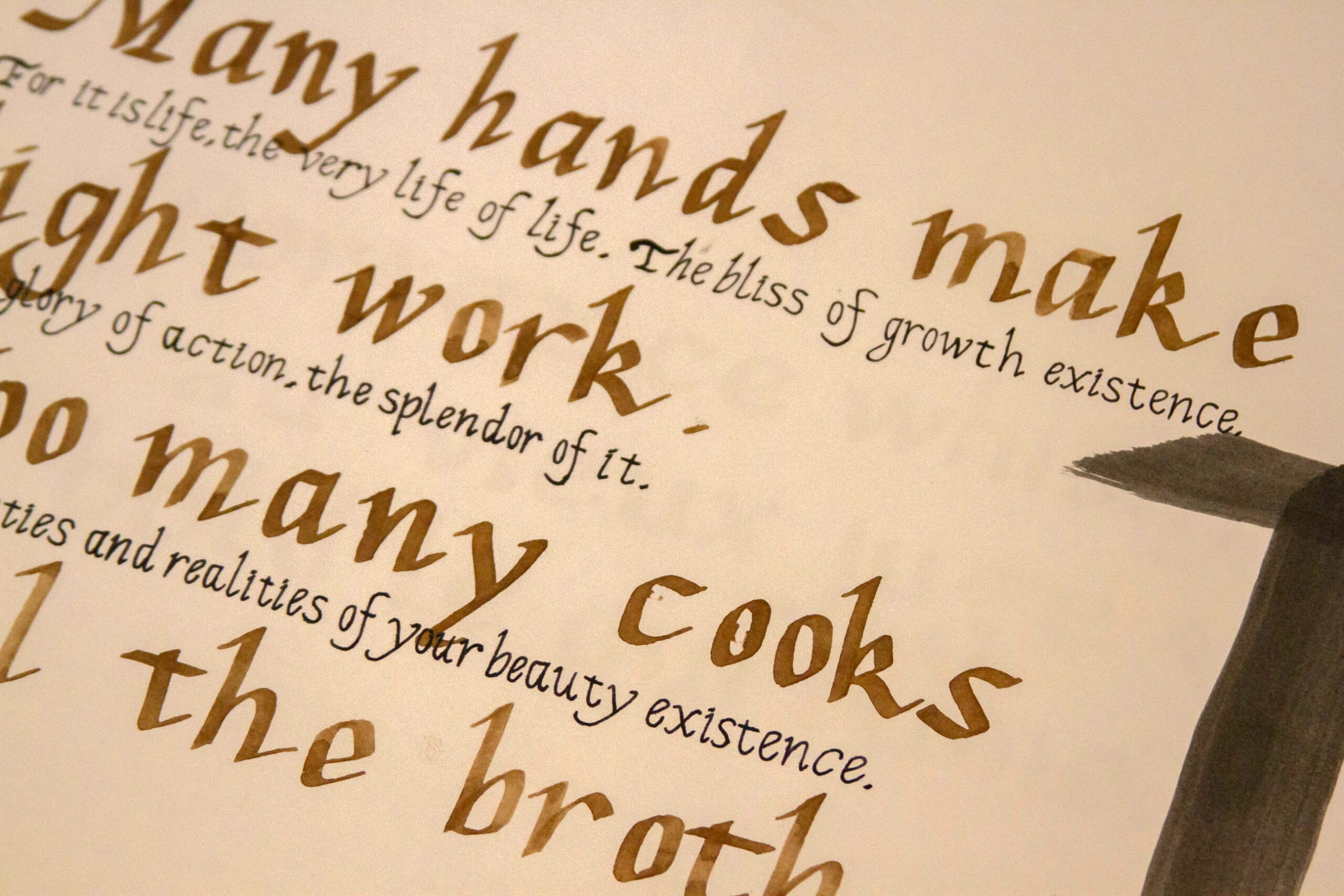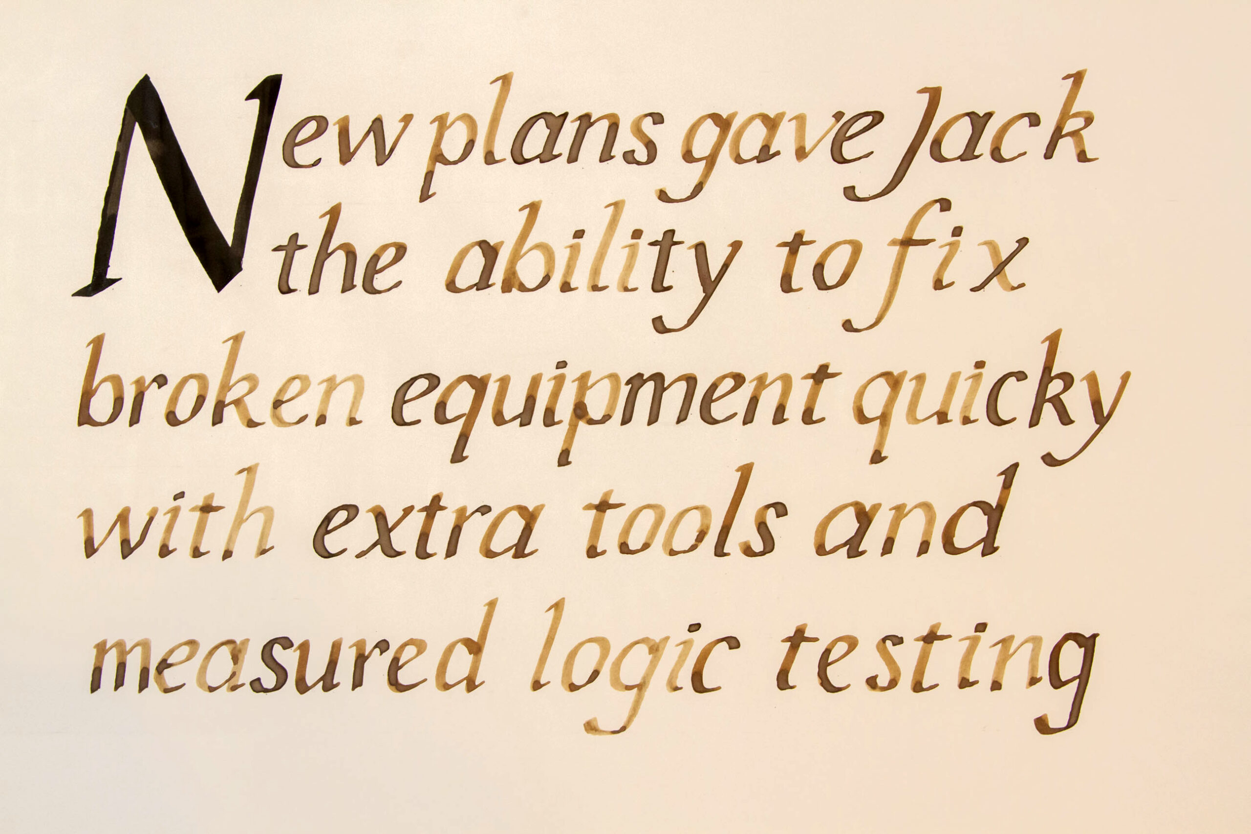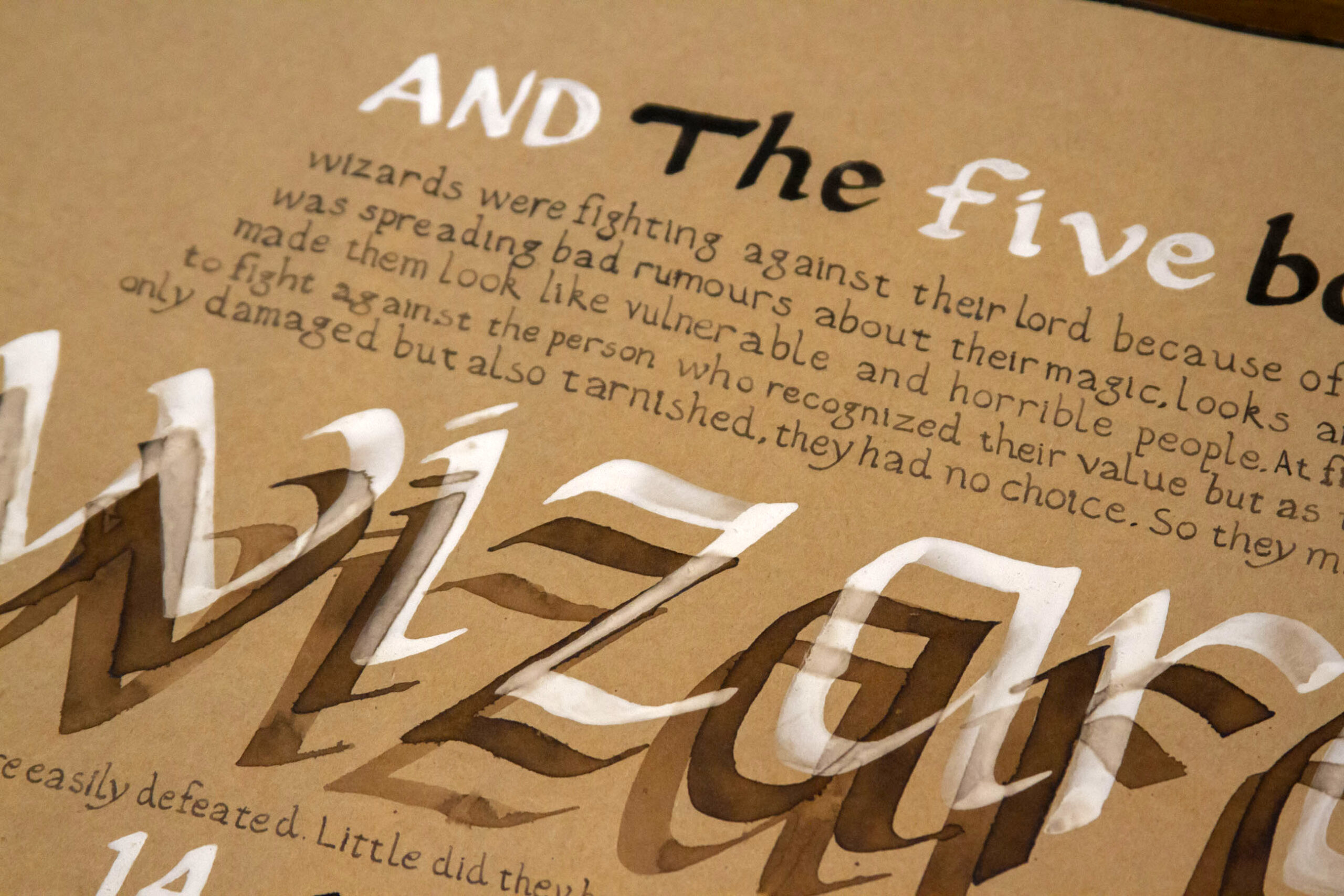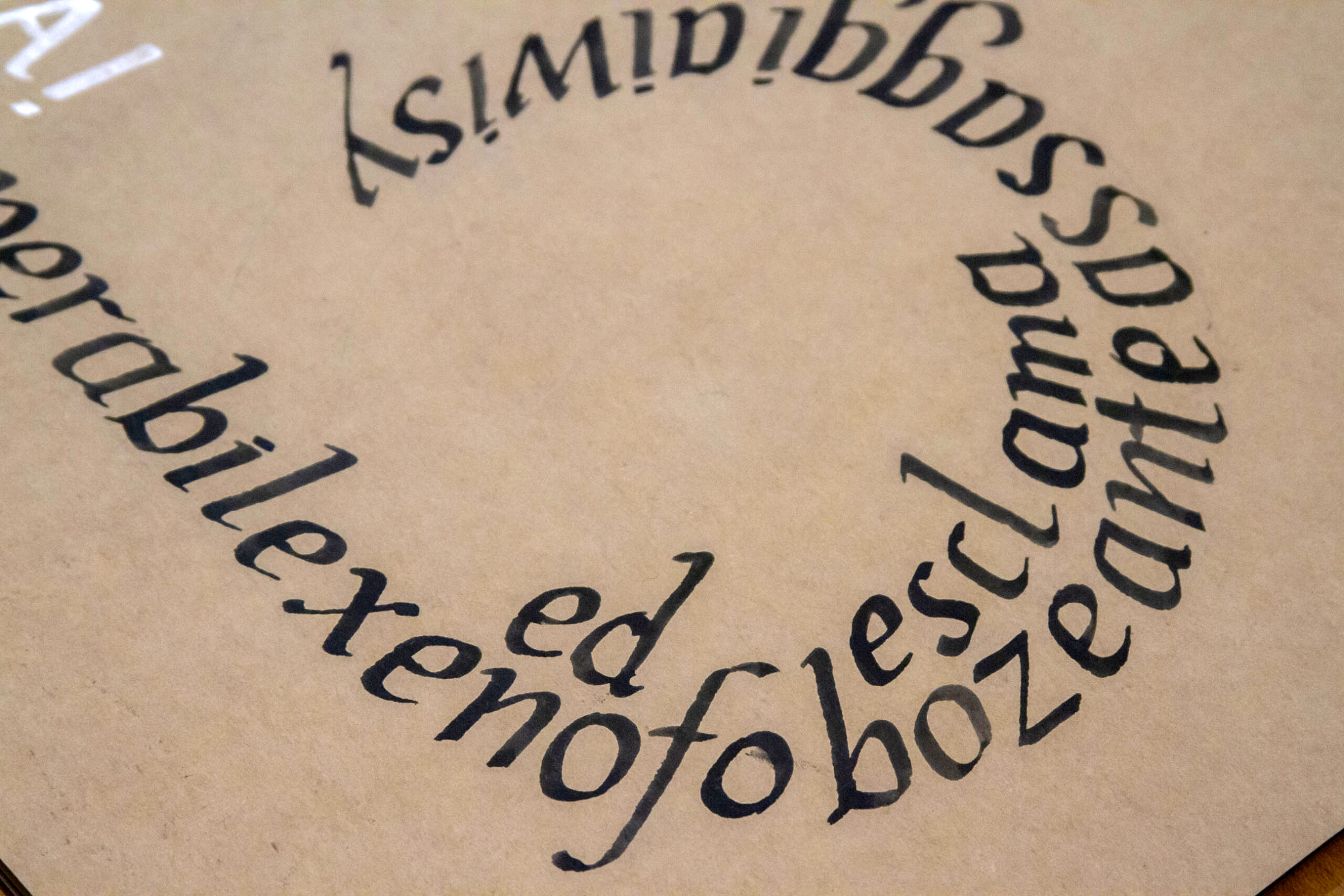 Signos y textos trazados con diferentes herramientas, medios y soportes. Entendemos y analizamos la morfología de los signos alfabéticos a partir de las herramientas (plumas chatas y tiralíneas), los medios (tinta, aguada, nogalina) y el soporte (papeles de diversos gramajes, texturas y color).