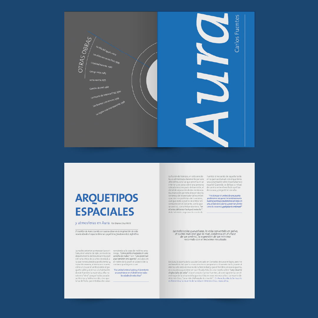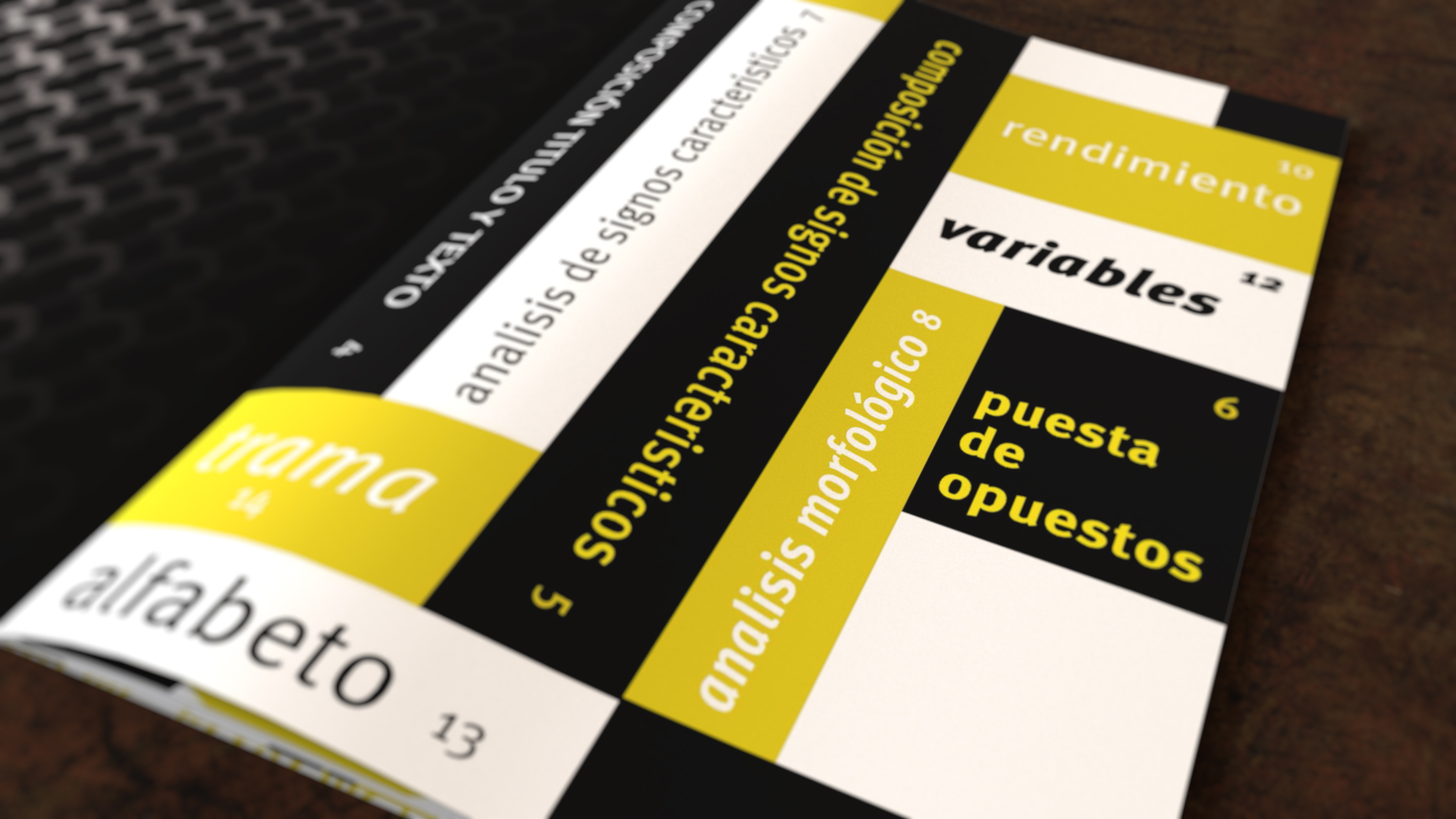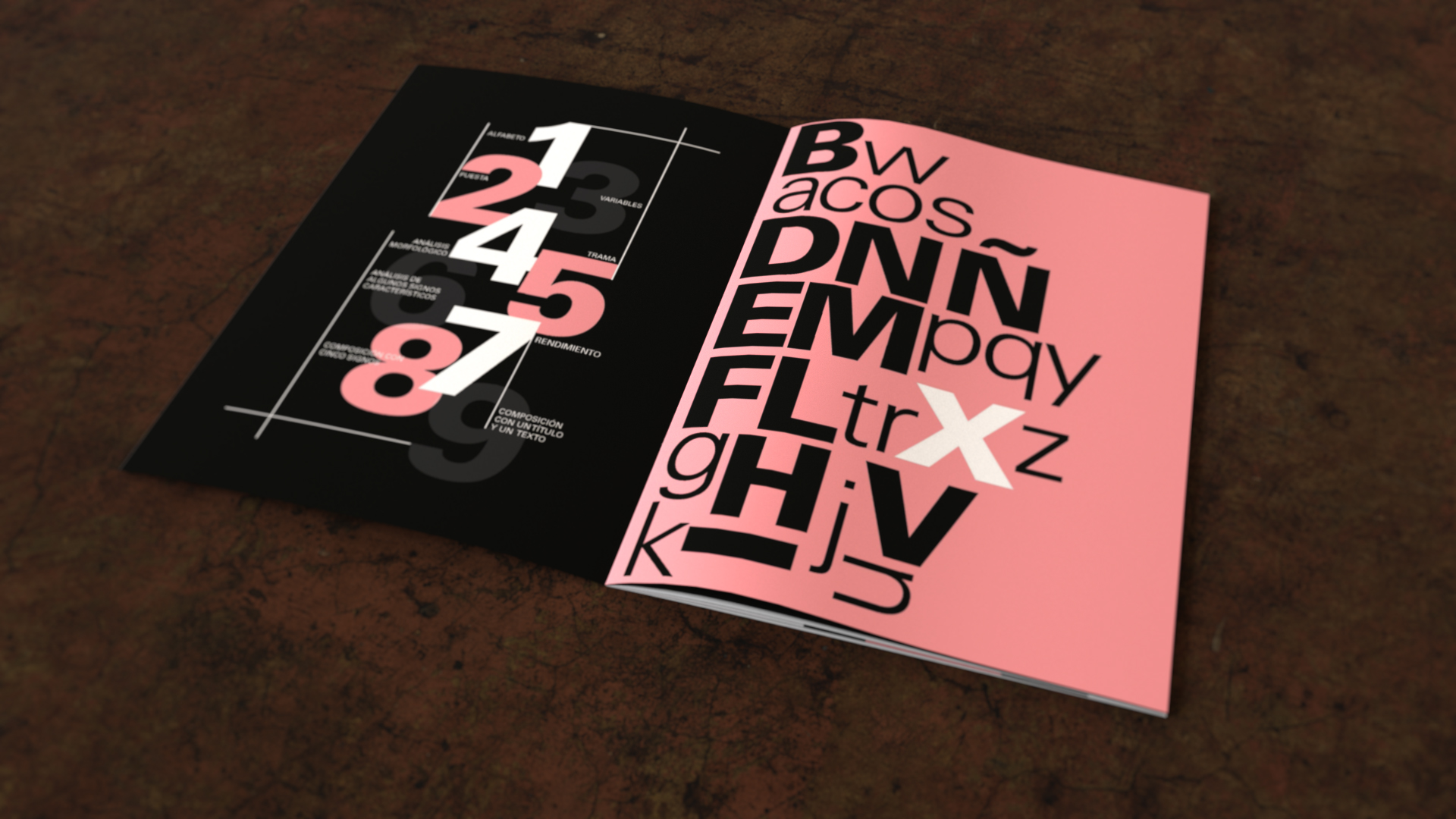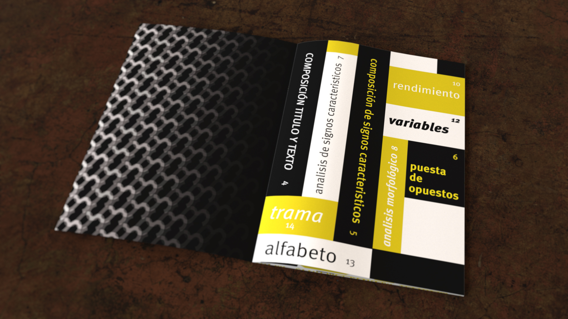 Es el trabajo final, síntesis de la cursada. En él, abordamos la composición tipográfica desde diversas tipologías textuales: portada, artículo en doble página y esquema. Manejamos el concepto de jerarquías tipográficas, sus relaciones y su organización y nos introducimos en la noción de tipologías textuales e información.